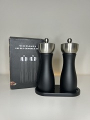 Sweet Alice Wooden Salt and Pepper Mills. New in Box (NIB). Comes with Stand.