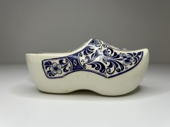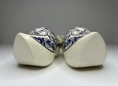 Vintage Holland Dutch Clogs Delft Blue & White Wooden Carved Shoes Hand Painted