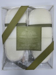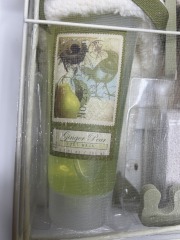 Lila Grace Ginger Pear Foot Care Set Gift Set Plush Slippers Foot Wash Foot Lotion Foot Brush with Pumice Stone and 2 Toe Separators in Decorative Organza Covered Box (box frame has slight bending/damage but products are in excellent condition).